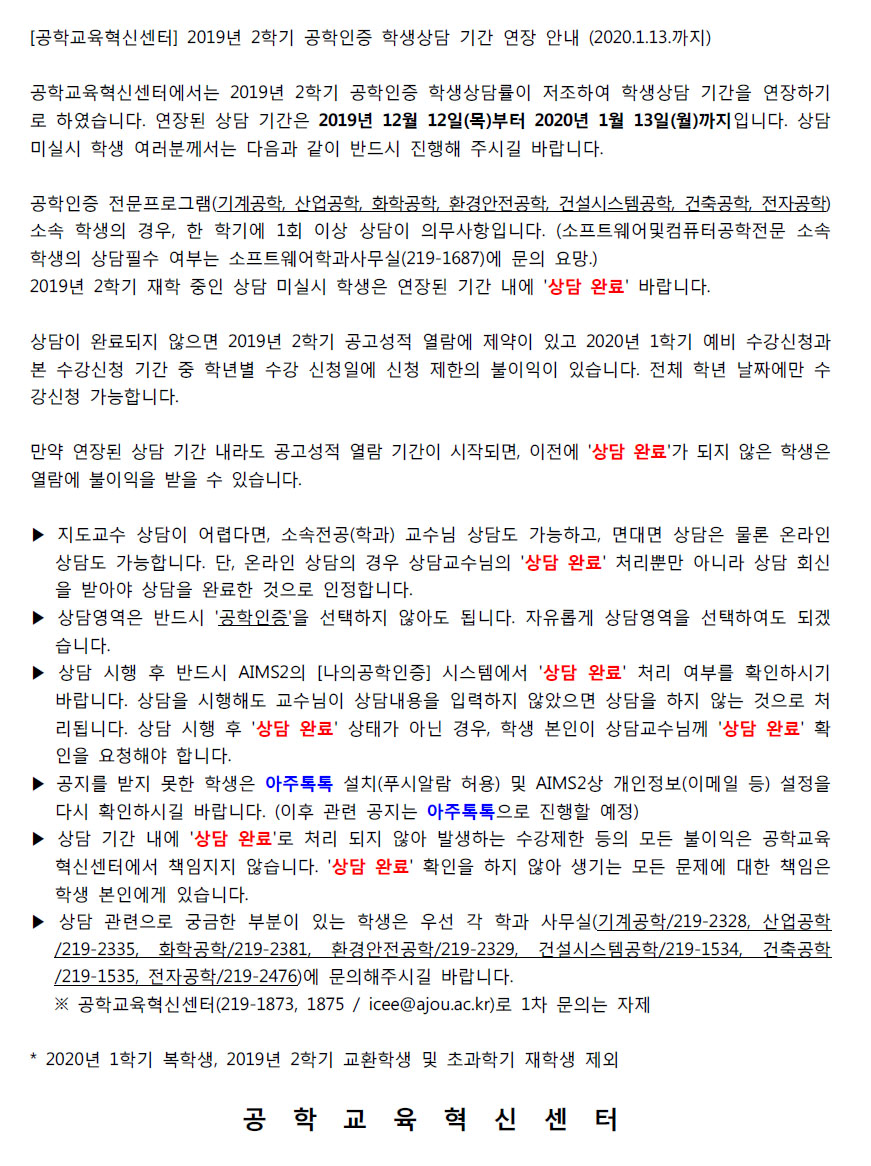 | 322 | 기타 | 공과대학교학팀 | 2019-09-25 | ||
