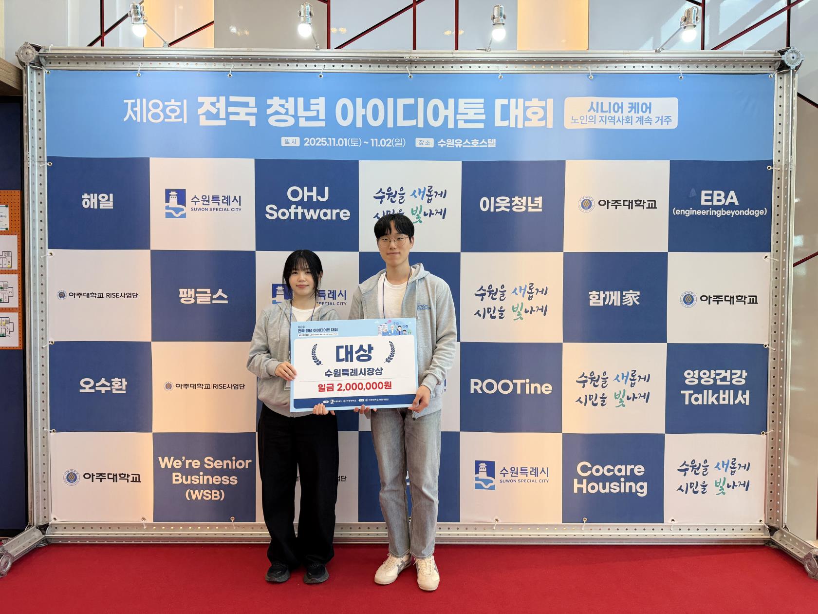 대상을 받은 아주대 간호학과 지유빈·정민혁 학생팀(팀명: 이웃청년)