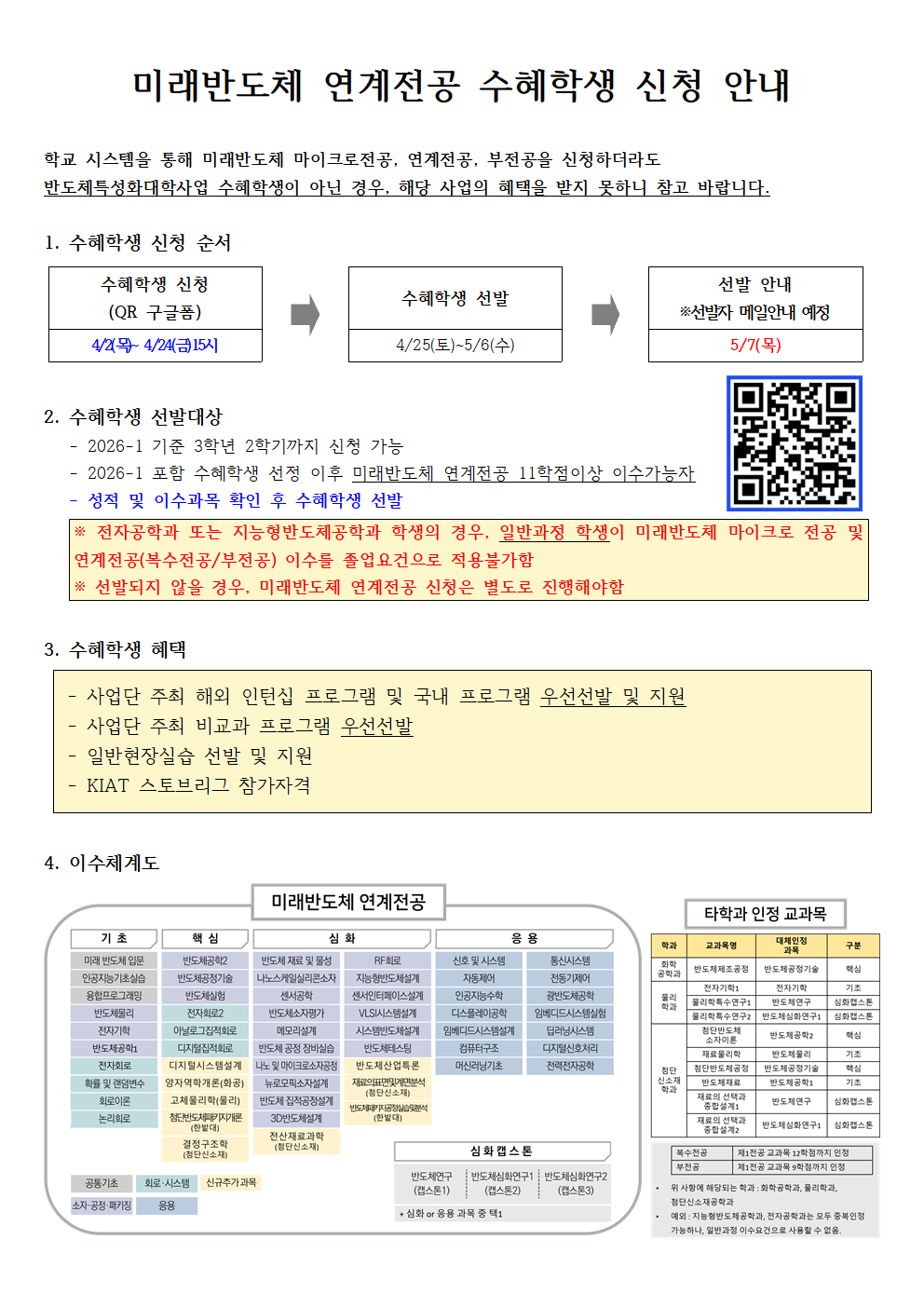 미래반도체 인계전공 수혜학생 신청 안내드리오니 많은 관심과 신청 부탁드립니다.